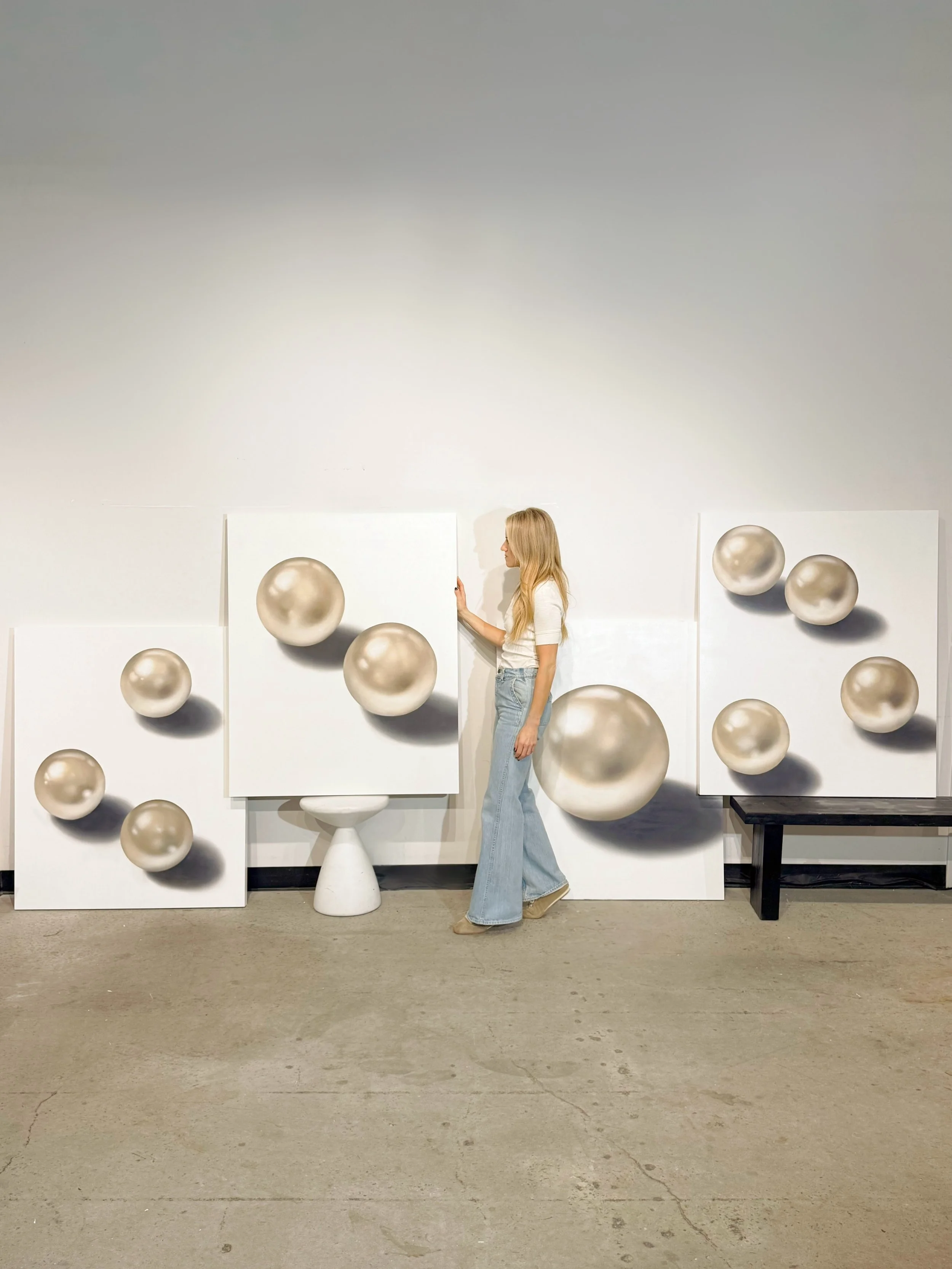 Renée Levin transforms ordinary objects into quiet meditations on emotion, memory, and the orderly patterns of the natural world. Through careful restraint and scale, her paintings invite viewers to slow down, reflect, and feel the granular contours of delicate objects like pearls, shells and flowers, while also luxuriating in their monumental presence.